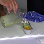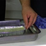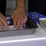 Terminado de homogeneizar esto, se le agrega el segundo relleno a la base que teníamos del primero y ahora sí, colocar en la base papel secante (como se ve en la imagen) y agua.