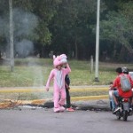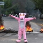 Un grupo de vecinos cortó la intersección de las calles 122 y 50 en la capital bonaerense de La Plata para manifestarse por la falta de agua que padecen desde hace más de quince días. Uno de los manifestantes tuvo una peculiar idea. Acudió a la protesta disfrazado de la Pantera Rosa.