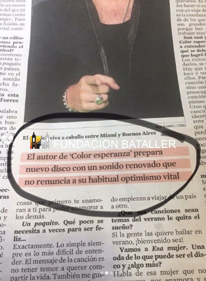 Coti publicó una foto del diario y remarcó donde se lo mencionaba como "el autor de Color Esperanza".