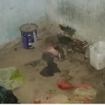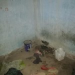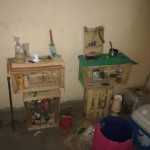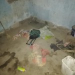 En otra de las habitaciones en un rincón estaba una mochila con ropa, una improvisada mesa conformada por un vidrio apoyado sobre un block, un viejo tacho de pintura y una cubeta de plástico los utilizaban para sentarse. El piso con manchas y suciedad.