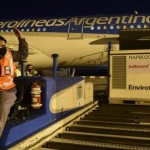 El cargamento con 848.250 dosis de la vacuna Pfizer llegó a las 15.36 al aeropuerto internacional de Ezeiza, en el vuelo AA931 de American Airlines.