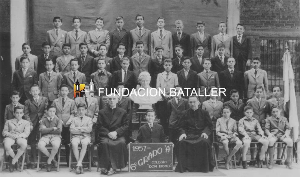 1957 – Alumnos de la primaria del Colegio Don Bosco. En la foto de 1957 aparecen, todos de traje y corbata, los alumnos de Sexto grado “A” del Colegio Don Bosco. Junto a los alumnos aparecen el padre Antonio Garbini y el padre Recio. Entre ellos se observa un busco de Juan Bosco. La fundación del Colegio Don Bosco en San Juan fue el 19 de marzo de 1930, fecha en la que monseñor Américo Orzali inauguró y bendijo los primeros locales del colegio, cuyo director era el padre José Fanzolato. (Foto proporcionada por Oscar Robles)