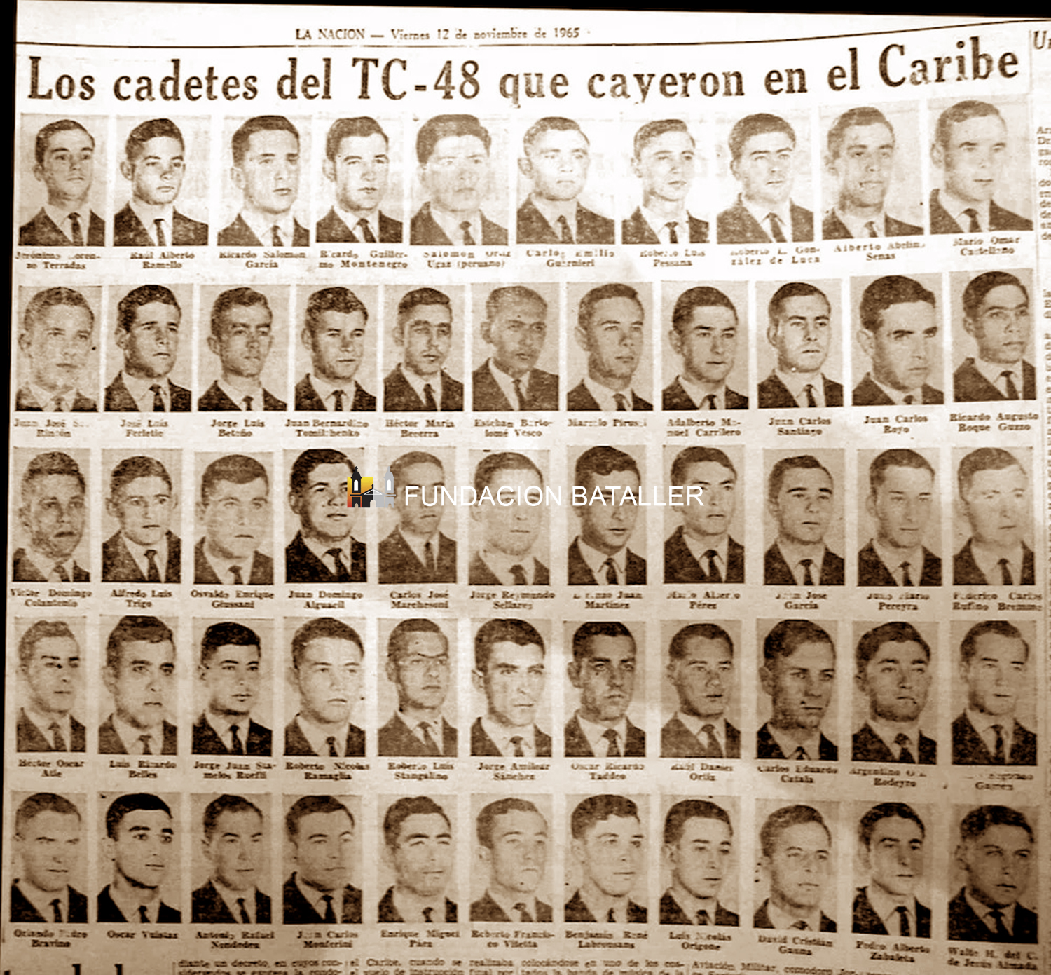 El 3 de noviembre de 1965, 68 tripulantes argentinos del avión Douglas C-54 Skymaster, matrícula TC-48 de la Fuerza Aérea Argentina que había viajado desde el país hacia Estados Unidos. Esta es la última foto de los tripulantes que nunca llegaron a destino.